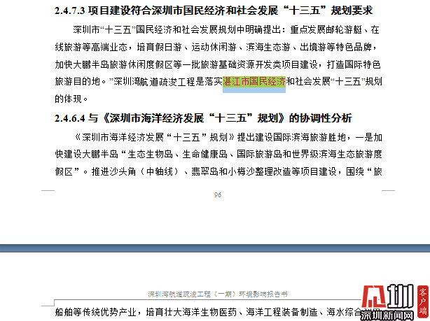 记者在《环评报告》中看到,有关表述存在错误属实,在对深圳湾航道疏浚工程(一期)项目可实现的目标的阐述中,将“深圳市的目标”阐述为“湛江市的目标”;将“深圳湾红树林”表述成“湛江湾红树林”;将“深圳市国民经济”表述成“湛江市国民经济”;将“深圳海事局”表述成“湛江海事局”等。