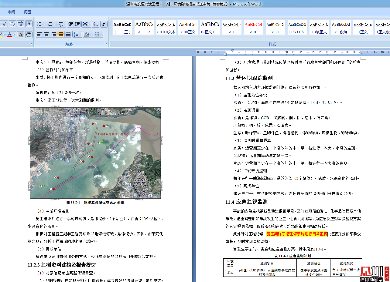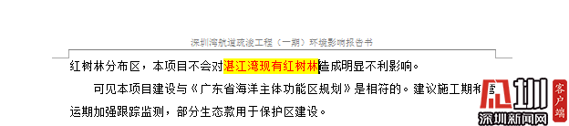 见圳客户端·深圳新闻网2020年3月27日(见圳客户端、深圳新闻网记者 钟鸿冰)3月27日,有网友向深圳新闻网记者反映,《深圳湾航道疏浚工程(一期)环境影响报告书送审稿公众参与公示的公告》出现错误,文中多处出现将“深圳湾”表述成“湛江湾”,“深圳市”表述成“湛江市”等地方性表达错误。对此,记者从深圳市交通运输局官方公布的《深圳湾航道疏浚工程(一期)环境影响报告书送审稿》(以下简称《环评报告》)进行求证。