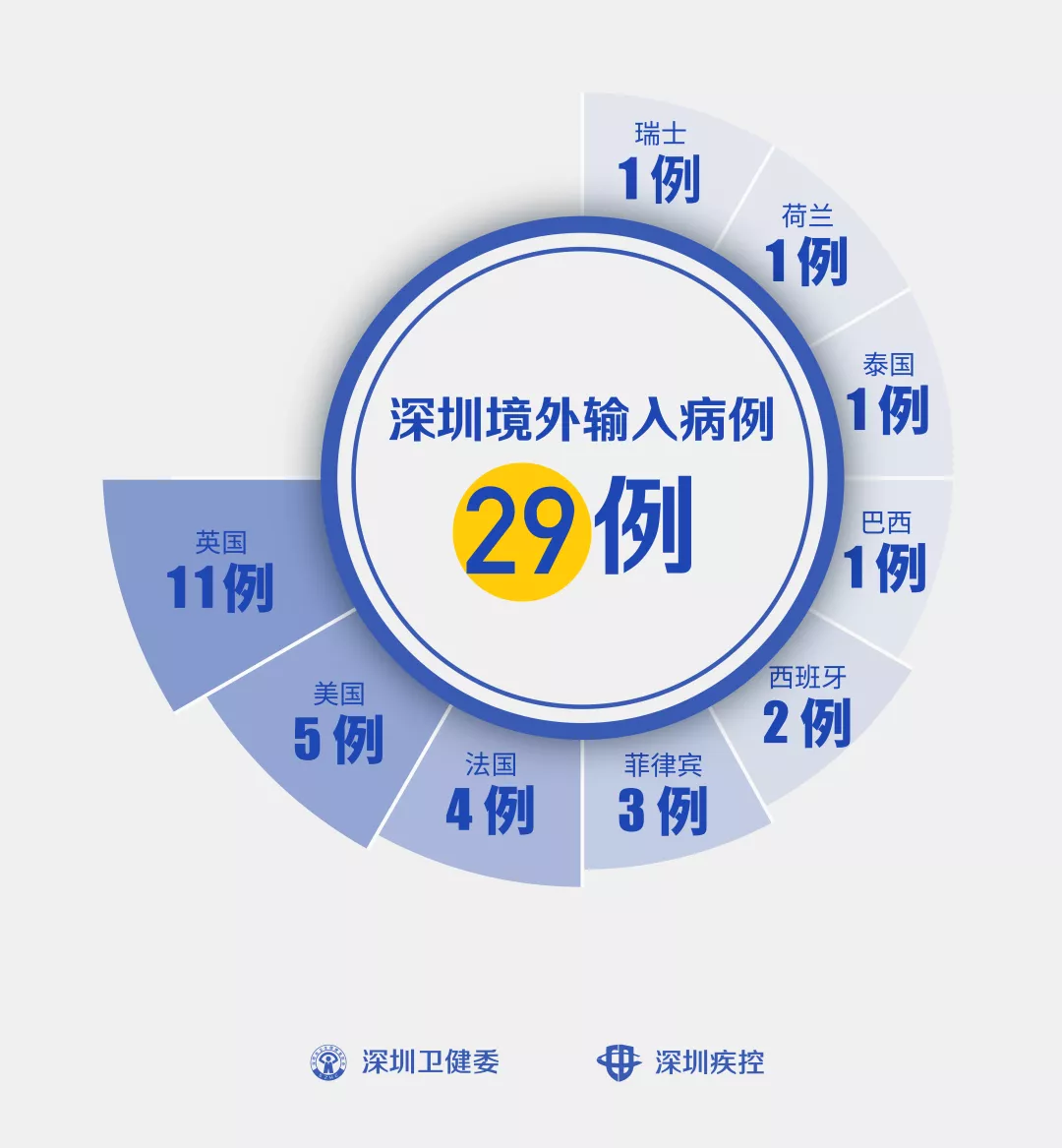 3月27日,深圳确诊2例境外输入“新冠肺炎”新病例,累计达29例。 病例28 男,32岁,中国籍,由巴西返回。3月21日从巴西圣保罗乘坐TK194航班飞往土耳其伊斯坦布尔,23日从土耳其伊斯坦布尔乘坐TK070航班飞往中国香港,24日从香港乘坐9C8922航班飞往上海,经浦东机场入境,入境时体温正常。25日从上海乘坐航班CA1893抵达深圳后,由专车送往隔离观察。26日患者自感发热,水银温度计自测体温37.7℃,随后由120救护车送医,当天新冠病毒核酸初筛阳性,深圳市疾控中心复核亦为阳性。27日经专家会诊,临床诊断为新冠病毒肺炎。 目前患者已转到深圳市第三人民医院隔离治疗。初步判定,中国内地密接者3名,已隔离观察。 病例29 女,51岁,美国籍,由美国返回深圳工作。3月21日从美国纽约乘坐BR0031航班飞往中国台北,22日从台北乘坐CA196航班飞往上海,经浦东机场入境,入境体温36.4℃。23日从上海乘坐CA1893航班抵达深圳后,由专车送往隔离观察。26日新冠病毒核酸初筛阳性,当天深圳市疾控中心复核亦为阳性。27日经专家会诊,临床诊断为新冠病毒肺炎。 目前患者已转到深圳市第三人民医院隔离治疗。初步判定,中国内地密接者1名,已隔离观察。 截至3月27日24时,深圳累计报告“新冠肺炎”病例446例。3月27日当天新增2例。 累计报告确诊病例中,男性217例、女性229例。 目前,死亡3例,累计出院416例。 27例确诊病例均在深圳市第三人民医院隔离治疗。 391名密切接触者正在接受医学观察。 资料来源:深圳市疾控中心、深圳市卫健委、广东省卫健委