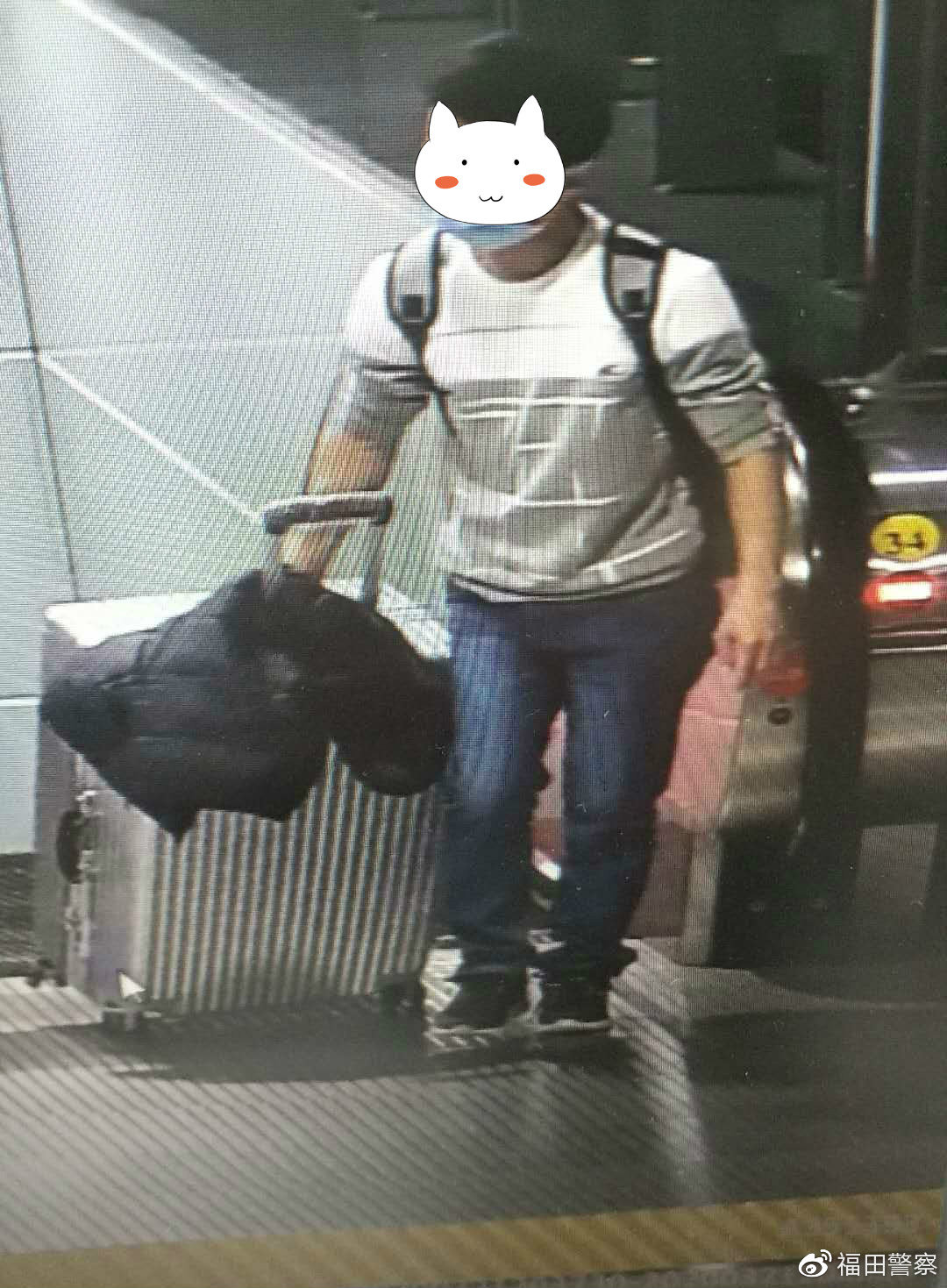 通过深入研判核查,民警发现21日晚20时许,一名身穿白色上衣牛仔裤的男子从地铁站出来,手上拉着的正是这个银色行李箱,背上背的也正是此黑色背包。后该名男子走到公交站台坐着发呆了半个小时,没有拿行李箱和背包便独身离去。