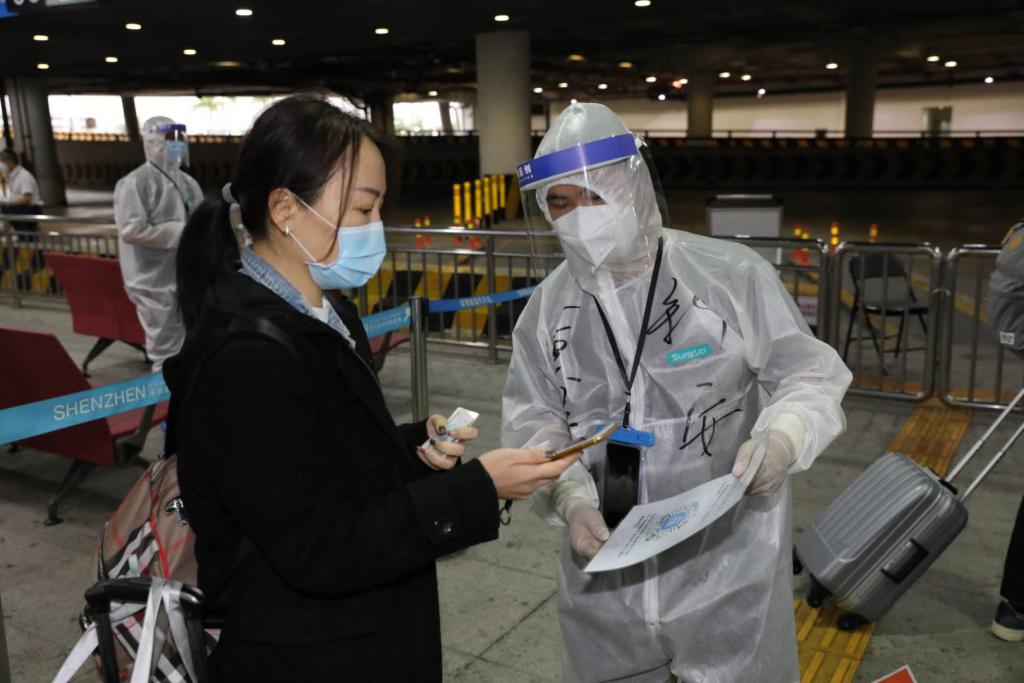 分拨转运点升级改造后,从下车登记扫码、享受免费车辆接送服务、"颜色管理"识别分流到分区分流接送、集中医学观察等流程环环相扣,形成"闭环式管理"。3月25日,深圳机场集团为宝安区工作专班现场指挥组配备"深圳机场旅客疫情信息查询系统",便于信息共享和沟通协调,进一步加快了响应速度。