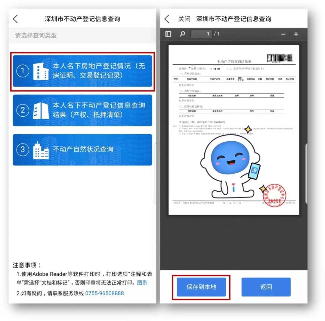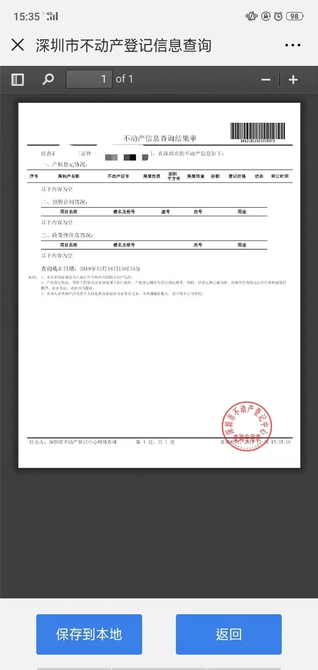 PDF文件里的电子公章是经国家密码管理局认证并通过公安部安全检测合格的电子签章系统印章。本查询生成证明与深圳市不动产登记中心各登记所人工窗口及现场自助终端机打印结果具有同等效力。