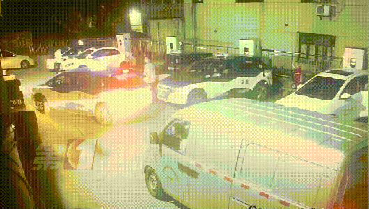 监控画面显示,25日晚上23点左右,一辆出租车和一辆面包车先后到达龙岗大道木棉湾路段的一个充电站。出租车司机先找到了一个位置,准备倒入充电时,后面的面包车突然往前开,两名司机因为停车位的问题发生争执。随后,出租车司机下车理论,动手推搡了面包车司机一下。