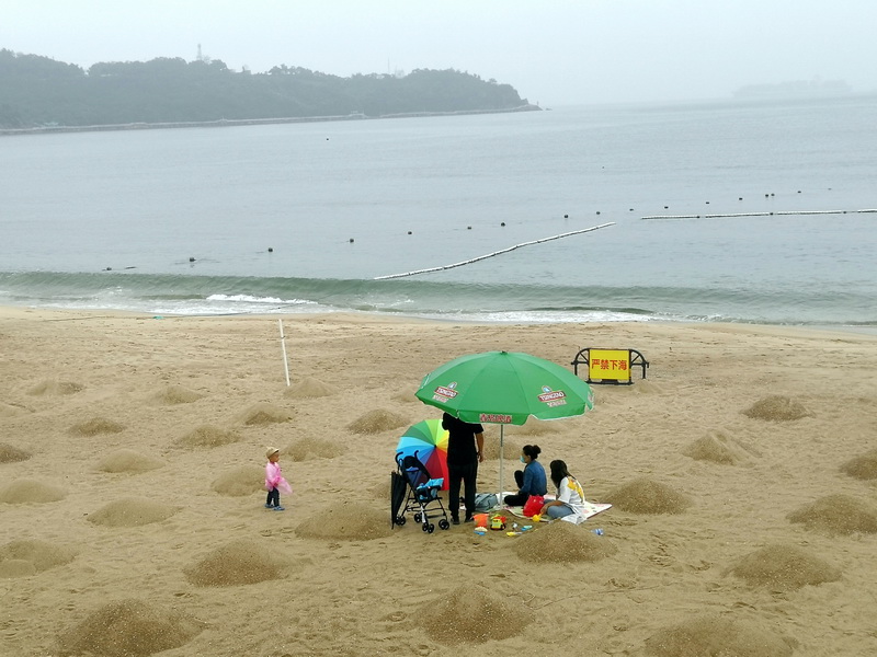 由于今天开园时下着小雨,游客较少,随着天气放晴,到小梅沙海滨景区游玩的游客会越来越多。