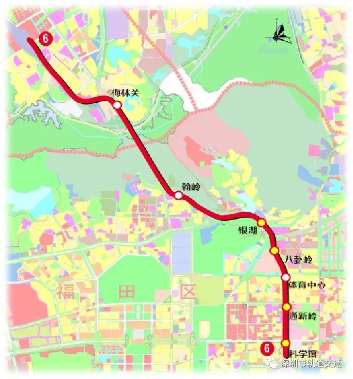 地铁6号线二期线路自深圳北站预留高架桥工程引出,途径龙华、福田、罗湖三区,终于科学馆站。线路途径科学馆、通新岭、体育中心、八卦岭、银湖、翰岭、梅林关7个站点,线路全长约11.8公里,包括7站7区间,换乘车站4座。可与已运营的地铁1号线、3号线、7号线、9号线实现换乘。截至目前,二期安装装修完成99%,附属主体结构基本完成。