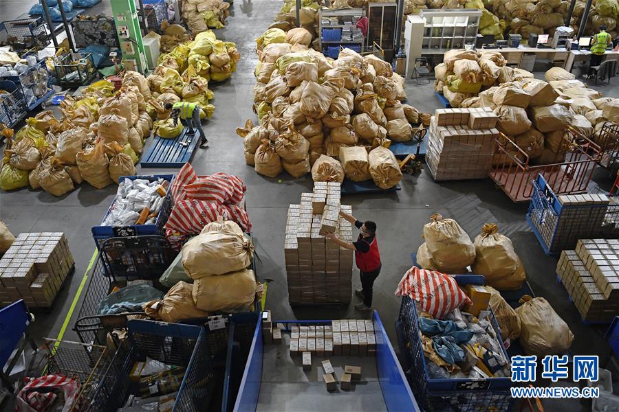 4月1日,在深圳邮件处理中心,工作人员在搬运邮件。据深圳市邮政管理局介绍,春节以来,深圳邮政快递业累计向湖北运送各类医疗、防疫物资超2万批次,累计为深圳市民配送防疫物资和生活必需品超过2.5亿件,为防疫物资和群众基本生活必需品送达提供了有力保障。新华社记者 梁旭 摄