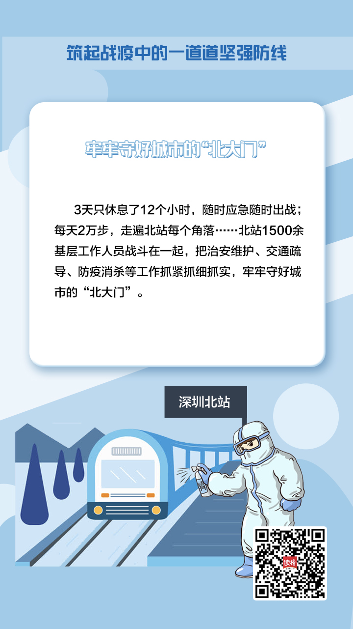 牢记习近平总书记的重要指示,深圳在新冠肺炎疫情防控的人民战争、总体战阻击战中,铸造了一支由不同“兵种”、精锐之师组成的守护者队伍,坚定地筑起一道坚强屏障,守护好城市“外防输入、内防扩散”的门户。
