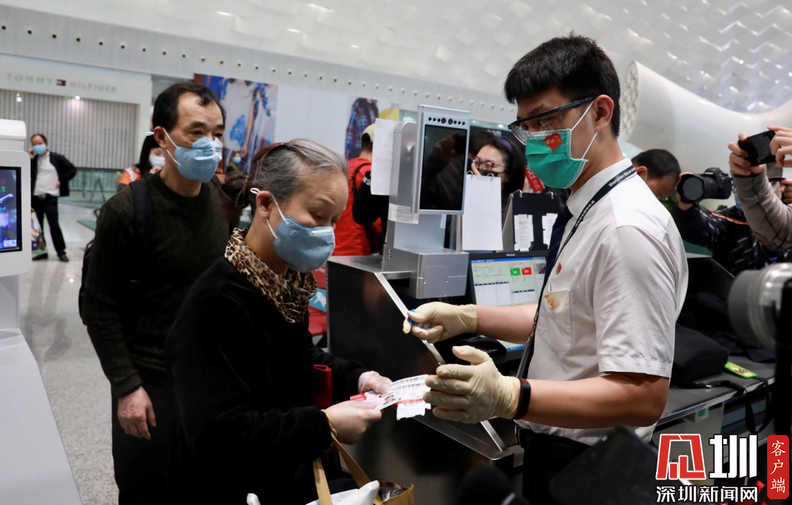 武汉重启,深圳第一班飞往武汉的航班正在进行登机手续。(钟鸿冰摄)