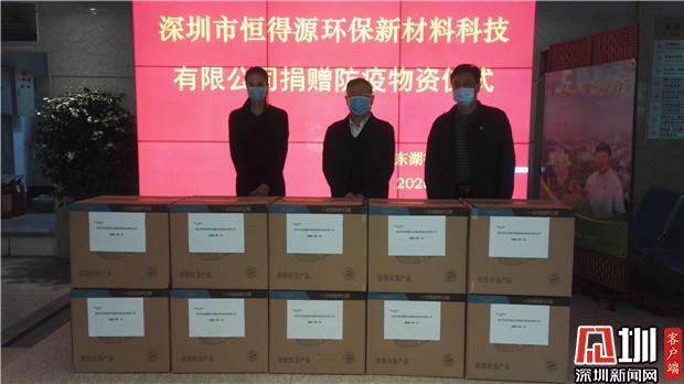 4月1日上午,马群涛代表委托深圳市恒得源环保新材料科技有限公司吕婷经理向东湖街道捐赠防护口罩一批次10000只,助力辖区疫情防护和企业复工复产。
