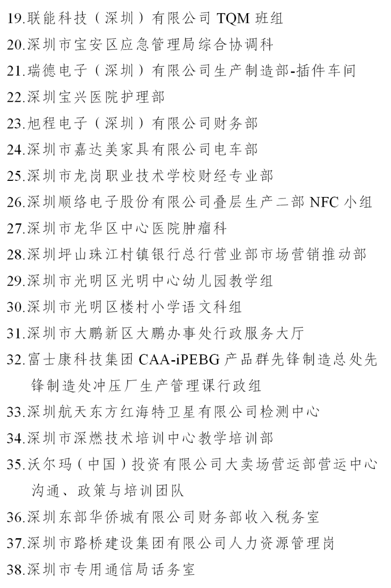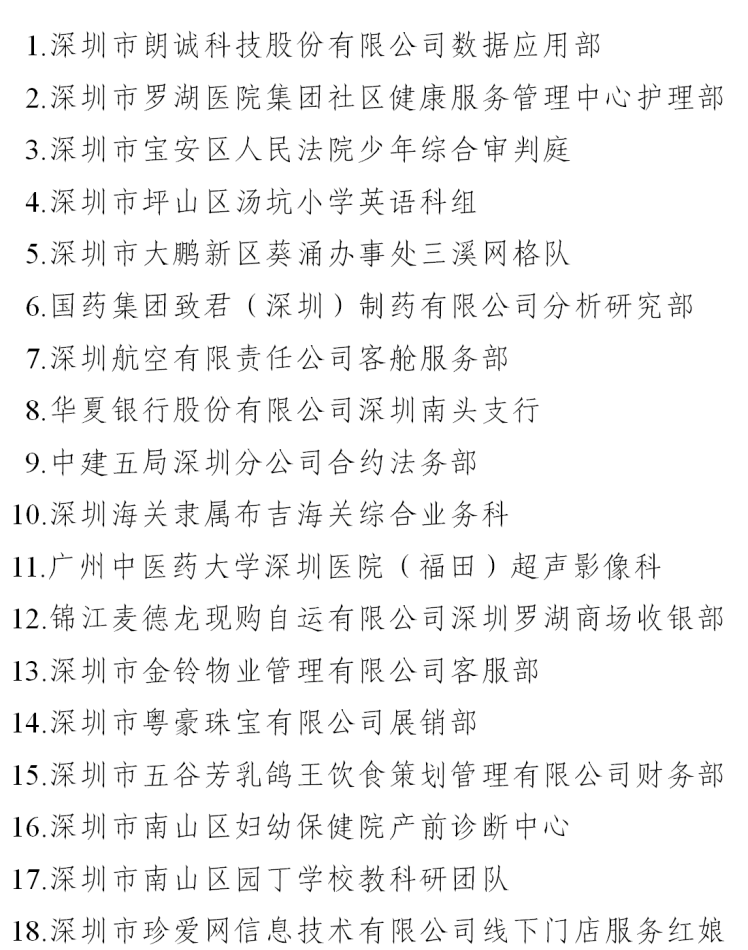 一、深圳市五一巾帼标兵岗名单