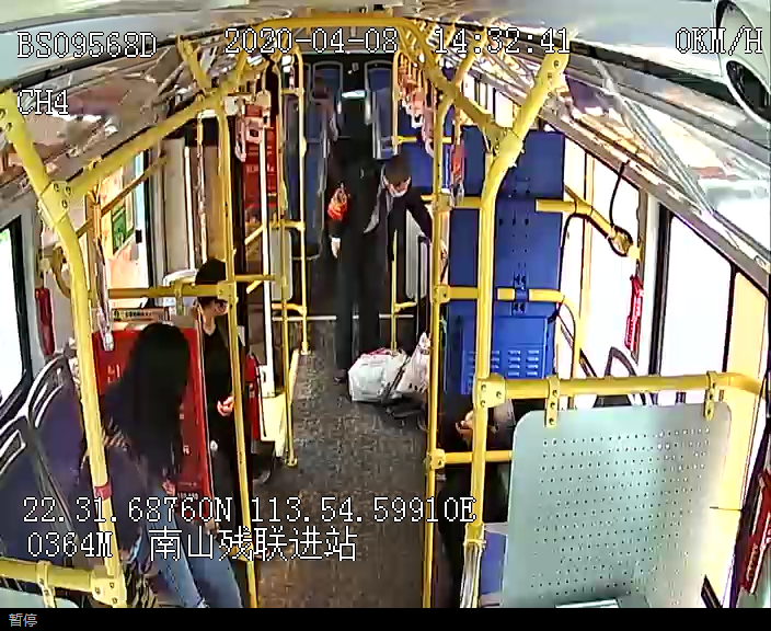 4月8日下午,67岁的李女士在广中医深圳医院站乘坐深圳巴士集团四分公司前海车队M364线粤B09568D车前往南山村西站。在当天下午14时31分,当班驾驶员曹利平驾驶着车辆进入南山残联站时,听到有乘客在车上的呼喊声,发现坐在后门附近座位上的李女士陷入晕厥,就连随身的买菜的手拉车车滑倒至后门踏板处造成的声响和旁边乘客的呼喊提醒声也没有听见。由于担心老人家的身体状况,曹师傅走到李女士身边多次呼唤,直到她清醒过来。