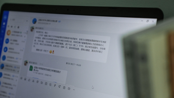上午的直播课刚结束,周老师又开始处理起收集统计数据的工作。周老师的丈夫同样也是一名教师,相比其他在家办公的老师而言,双教师家庭的教学设备就显得紧张了起来,家里只有一台电脑,如何兼顾两个人使用呢?对此,周老师夫妇俩特意调整错开了直播课的时间,尽量避免出现两个人同时需要使用电脑进行直播的情况。但是,除了直播课,在家办公的老师们,尤其是周老师这样的班主任,还要使用电脑进行传达通知、收集各种学生的信息、备课、批改作业等工作。有时候,双方突然都收到需要紧急处理的事项,周老师夫妇只能比别的老师们更加快速、高效完成,两人之间实现无缝衔接使用,才能不耽误工作。