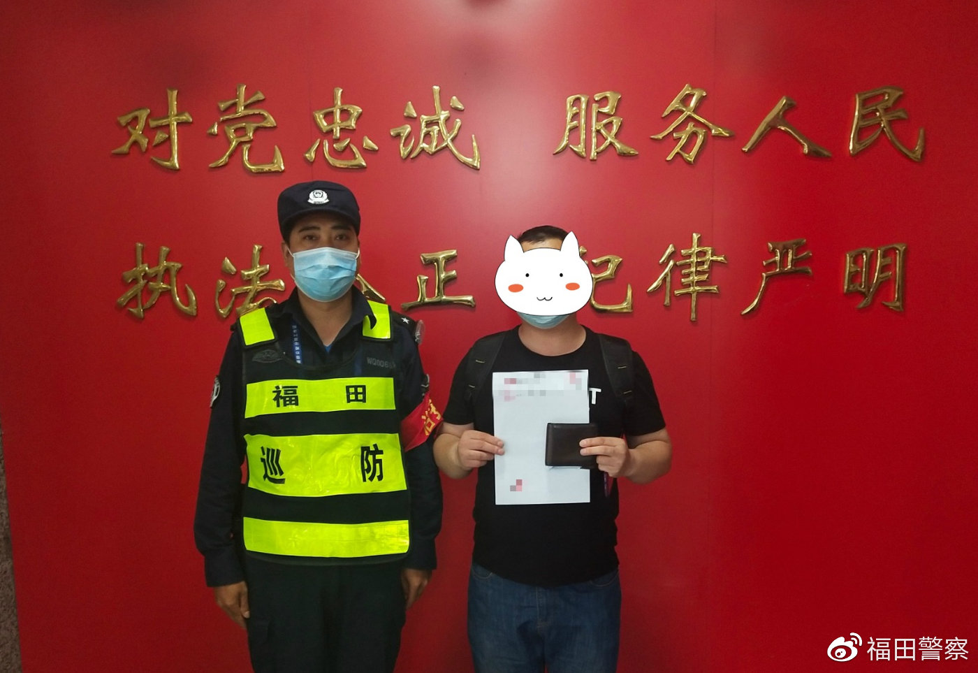 4月5日上午,深圳市公安局福田分局南园派出所队员段忠孝在回所交接班路途中,在地上发现一个遗落的钱包,打开仔细一看,内有银行卡、社保卡、身份证、现金410元人民币等物品,还有一张外出务工人员健康证明。