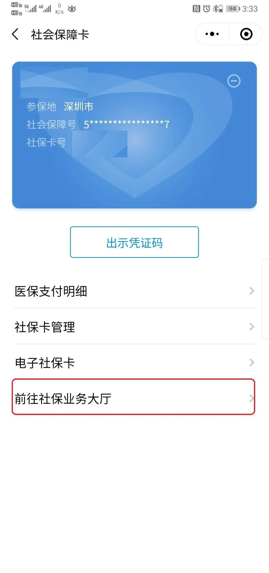 2、添加后点击进入“社会保障卡”—“前往社保业务大厅”;