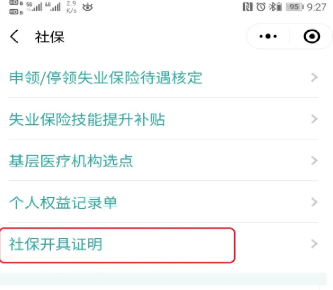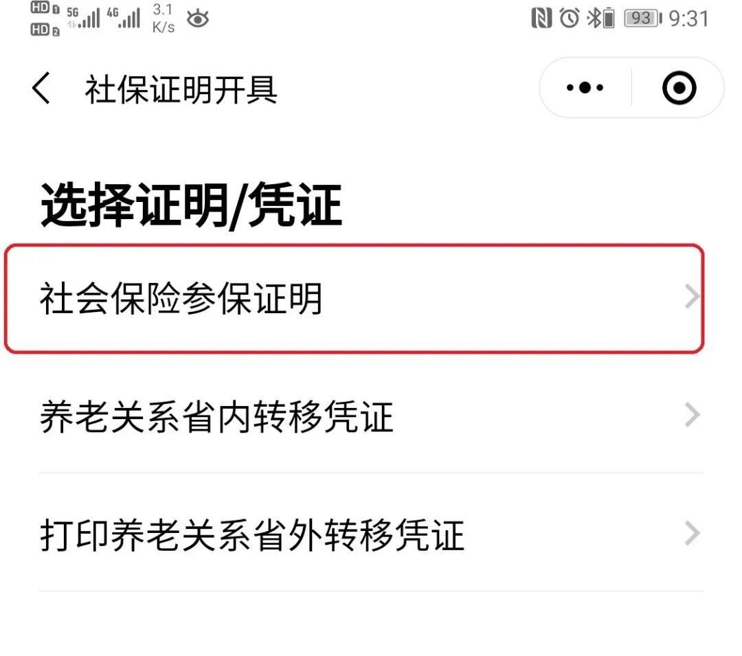 4、选择“社会保险参保证明”。