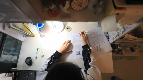 每天,她都是家里最早起的人,6点起床后就开始了一天的学习,直到晚上11点睡觉。除了一日三餐和下午给自己的一点放松时间,她几乎“足不出房”,上网课、自习、上网课……程灵钧父母告诉记者,她从小就是一个严格自律、时间观念极强的人,这对她这段时间在家上课起到了重要的作用。因此,程灵钧的在家学习状态几乎与在校没有什么不同,她按照既定的作息表,每天一步一步执行,确保在家的学习时间跟在学校时没有减少,将每一分钟的效率最大化。