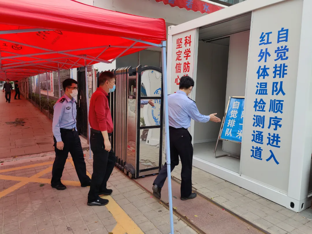 学校开学前期,福田公安分局加强与区教育、卫健等部门的沟通联络,联合学校建立“协作联动、信息互通”的工作机制,督促学校主动落实疫情防控责任,加强校园内、外部安保力量,做好人防、物防、技防等防范措施,在上放学高峰时段加强门前值守、巡查,在非上学时段全面封闭化管理,守好疫情防控的“第一道关卡”。