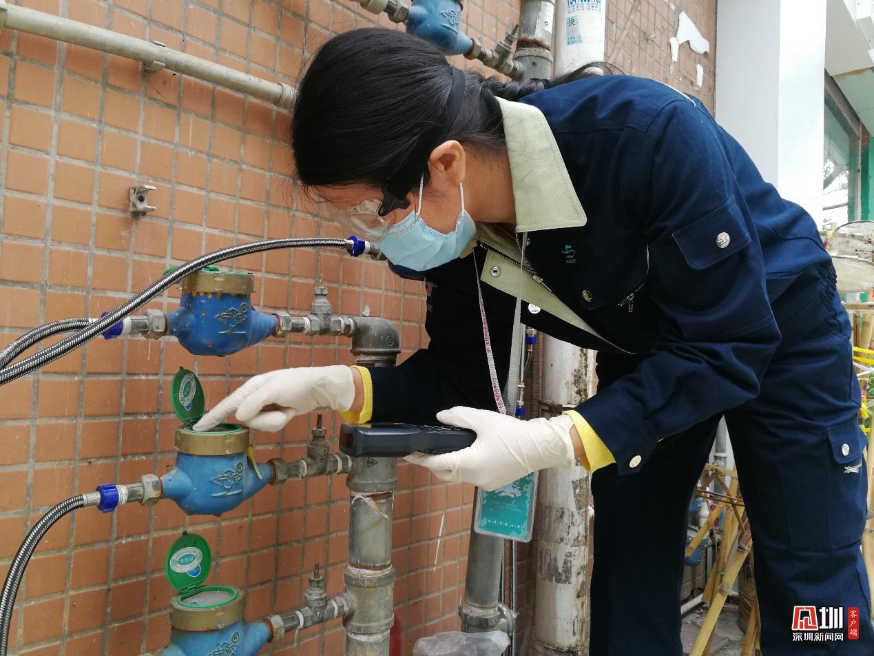 为准确读取疫情期间市民的用水信息,南山分公司抄表员陈秋斐,在做好防护工作后,前往小区读取水表。