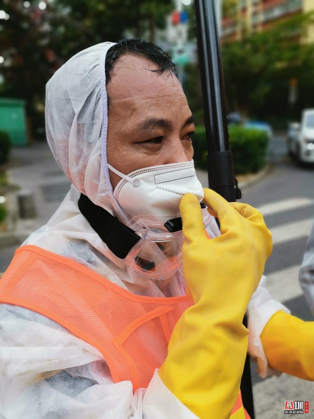 福田分公司管网工程师何胜平,疫情期间深入坂田街道“健康驿站”小区检查排水管网,经一天辛勤劳作后,衣衫湿透,满脸汗水。