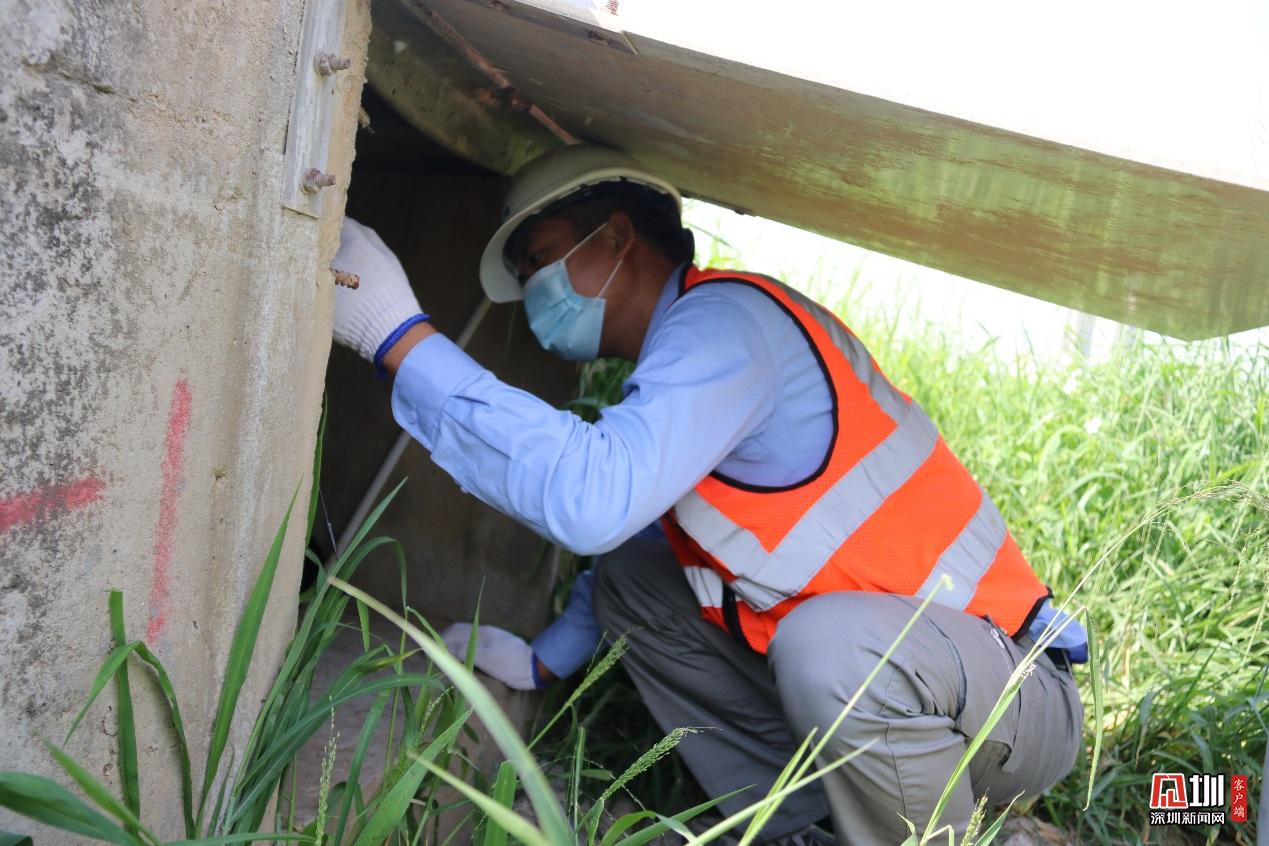光明水环境公司技术员莫贤纯,正观察茅洲河箱涵液位情况。为巩固茅洲河治水成效,深水人以“一点一滴”的努力,站好每一班岗。