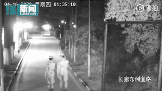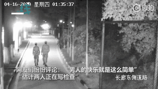 两位凌晨下哨的战士走在路上,突然间拉开架势,准备“打斗”。剑拔弩张之际,突然画风一转,两人做起了互相加油打气的动作。