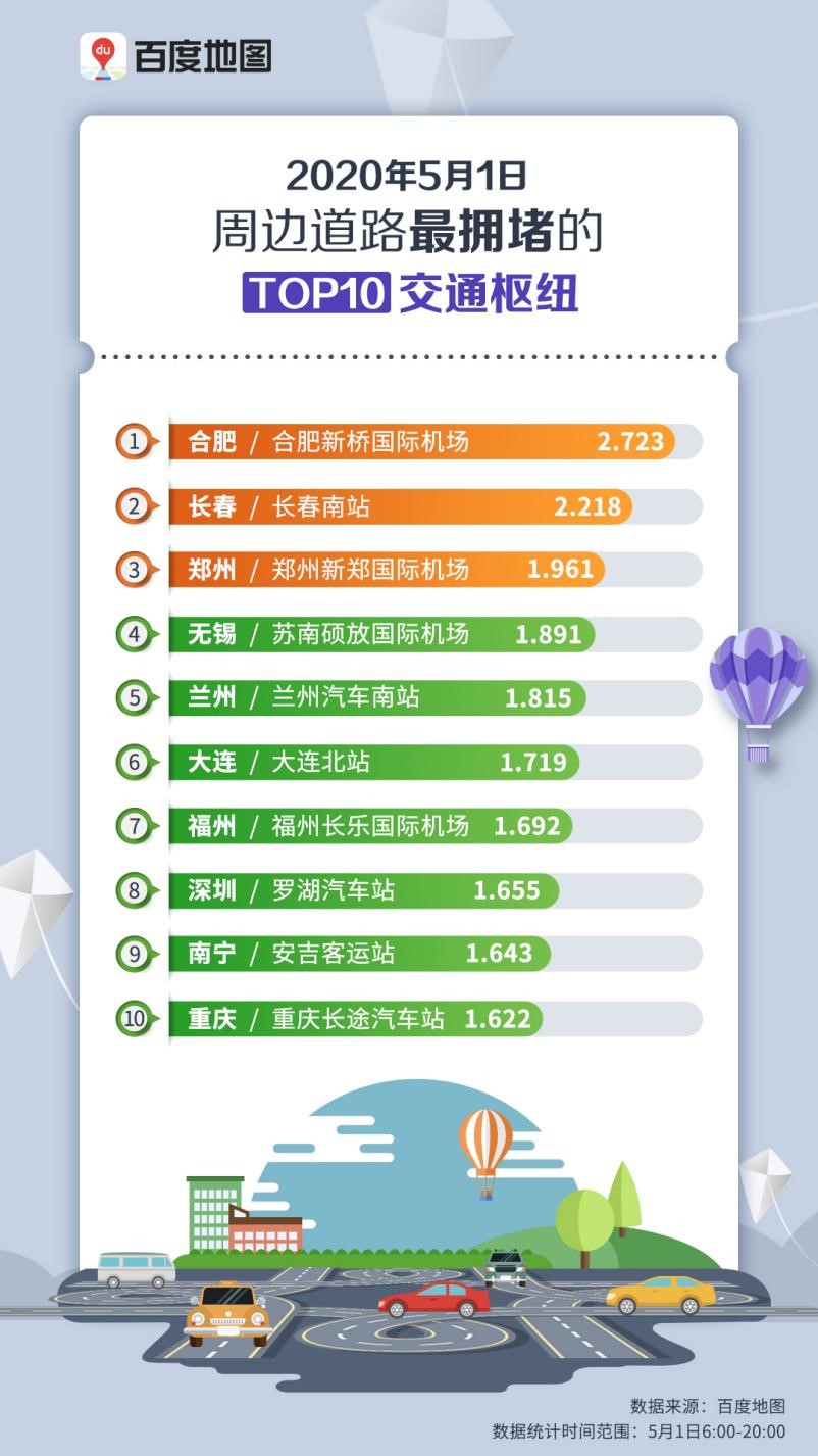 百度地图“5月1日周边道路最拥堵的TOP10交通枢纽”