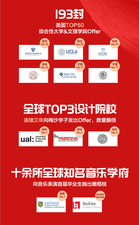 入读美国TOP10大学、“新常春藤”名校,与世界一线设计师享有同等教育资源,和知名音乐人做校友……10位梅沙优秀毕业生、1位家长代表、万科梅沙书院升学咨询发展主任邓宁女士带领的升学指导团队、艺术专业老师用经历和所见证明,这一切并非遥不可及。
