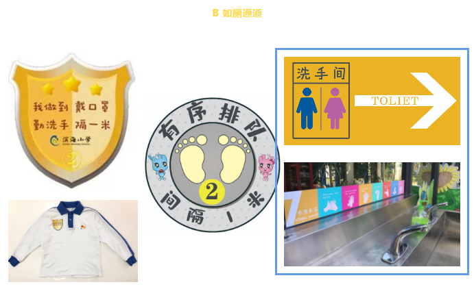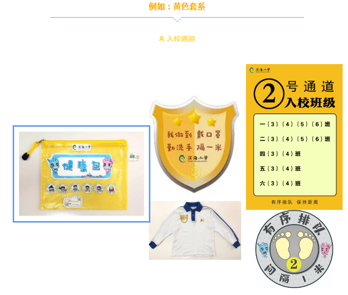 学校将教学区划分为“绿黄蓝”三区,并精心设计了带有滨海元素的“三色”入校通道、三色盾牌、三色贴纸等!