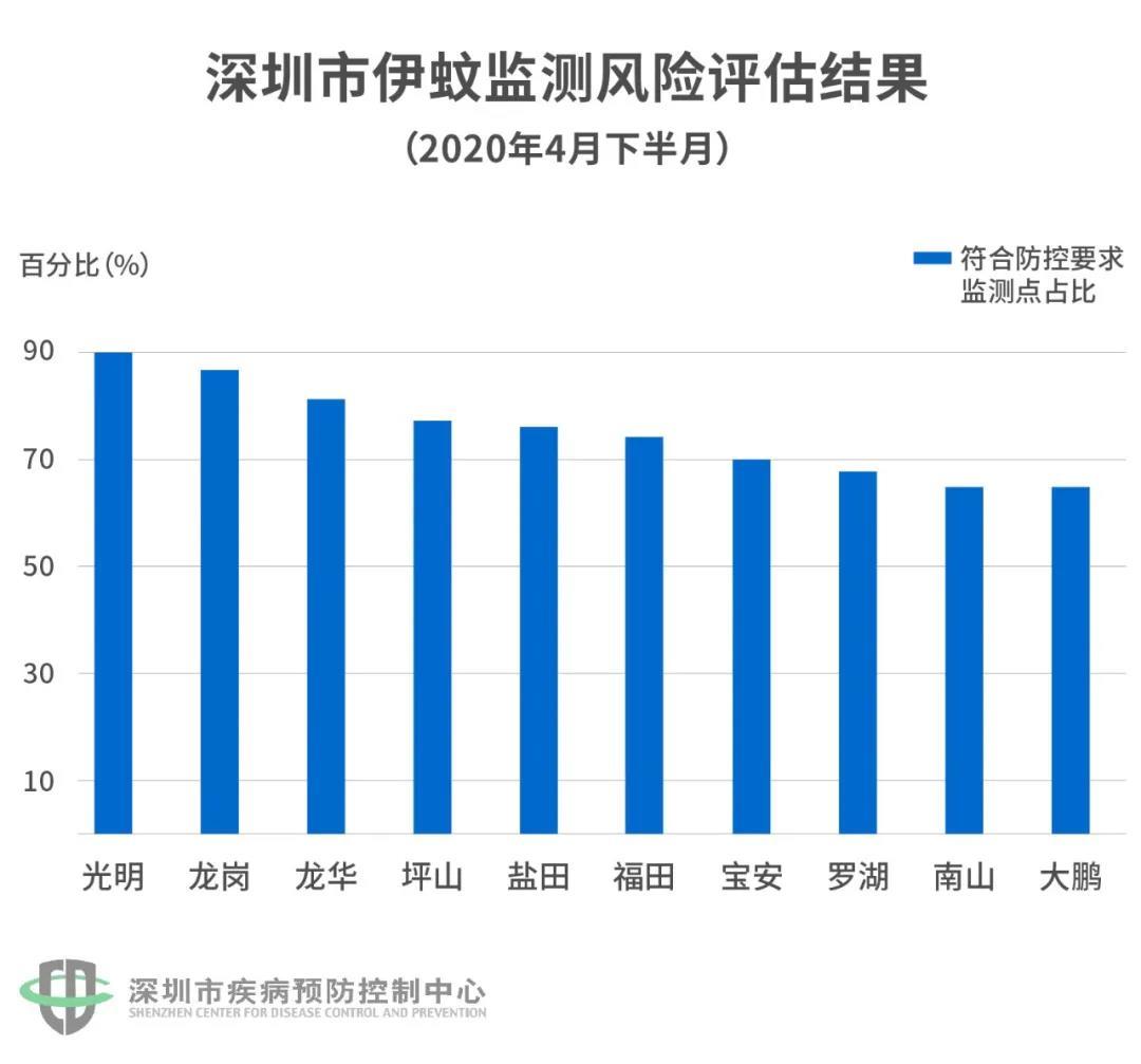 这张图是各区蚊子监测的“成绩表”。分数越高,说明合格的监测点越多,“安全系数”越高。