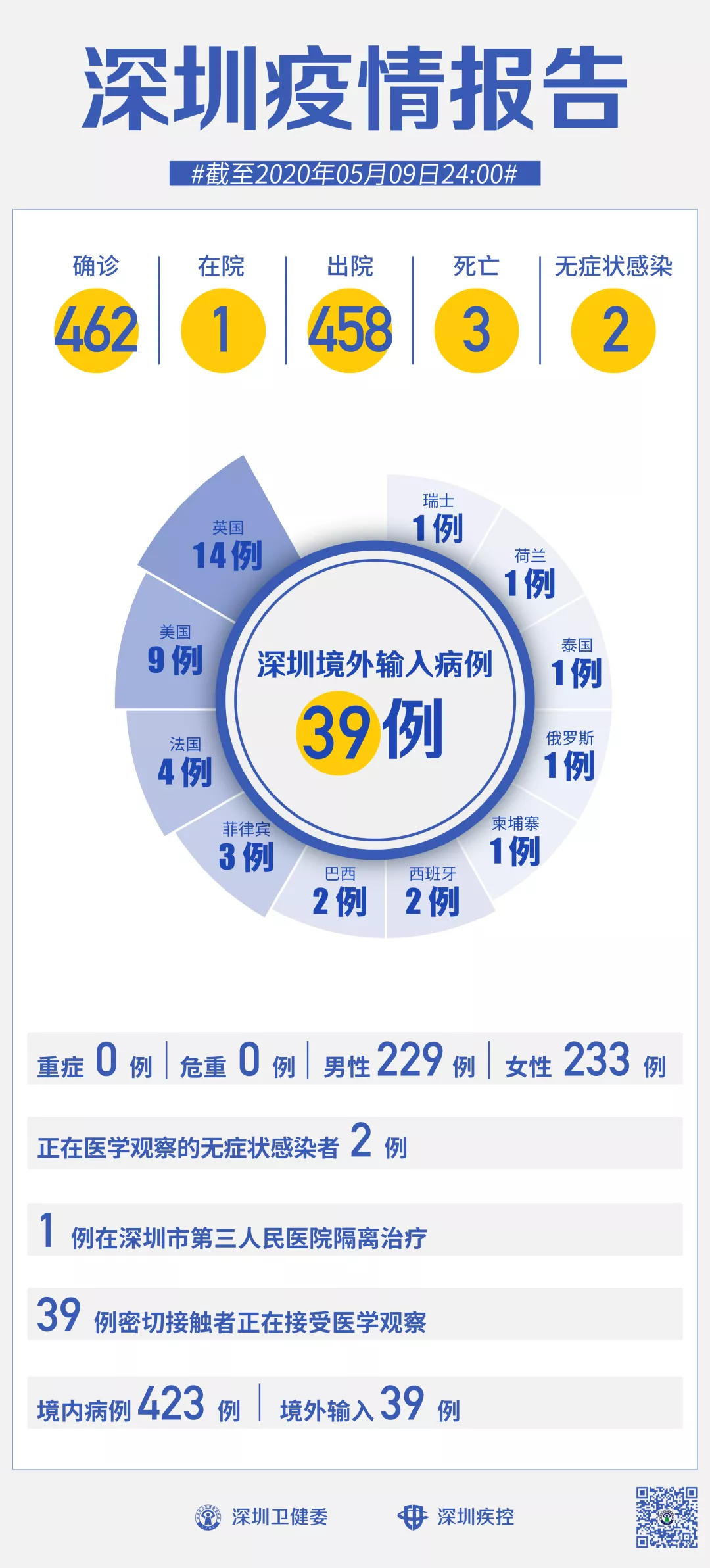 截至5月9日24时,深圳累计报告新冠肺炎病例462例。