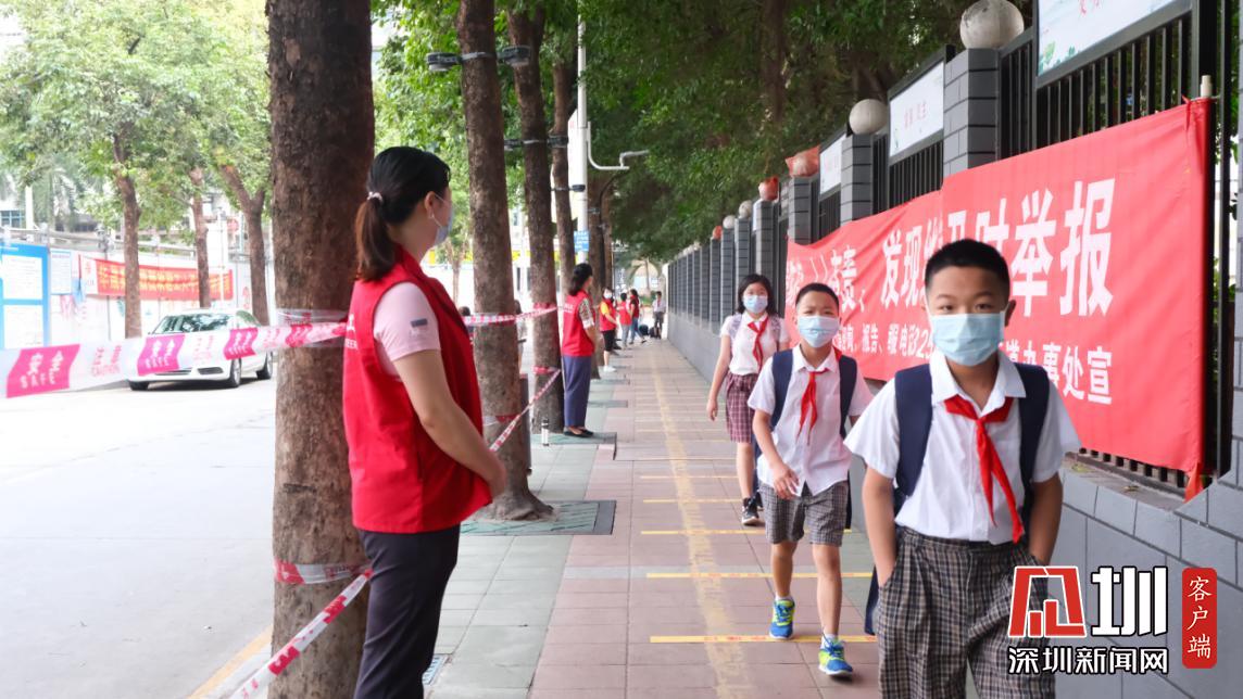 经历了三个月的线上学习后,水围小学四(一)班的同学告诉记者,起初接到开学通知就非常期待回到熟悉的校园。今天,在老师的指导及家长义工的帮助下,大家都忙而有序排队进入学校,发现校园环境更加整洁干净,见到敬爱的老师和亲爱的同学,心里非常激动。
