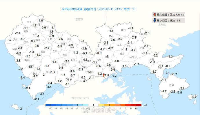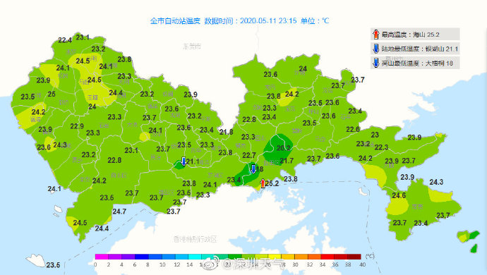 20时45分:【深圳市大风蓝色预警升级为黄色】深圳市气象台于2020年05月11日20时45分将全市大风蓝色预警升级为黄色,全市将自西向东出现10级左右阵风,信号可能持续2-3小时,停止高空、水上等户外作业,撤离危险地带人员;船舶采取有效措施避风。