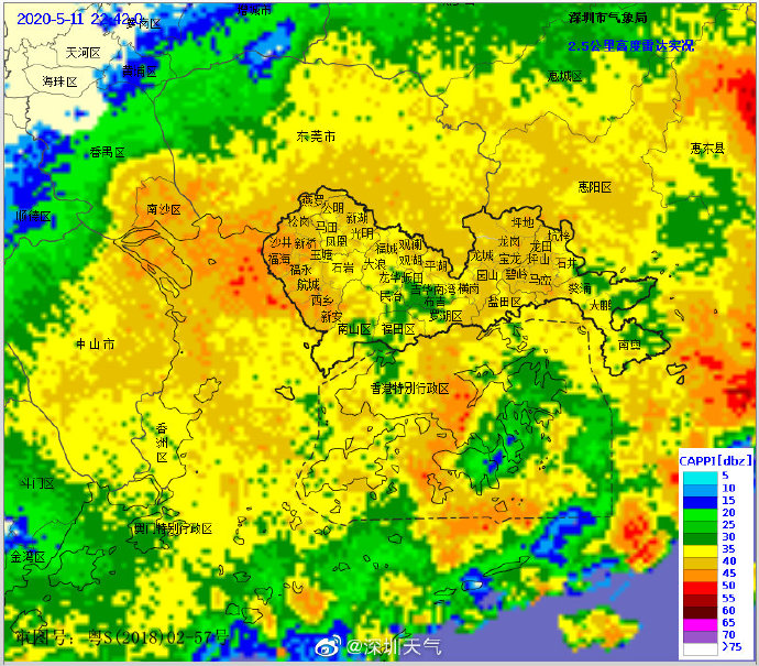 20时56分:目前强雷雨云团已开始影响宝安北部,未来一小时强雷雨自西向东影响宝安、光明、龙华、南山、福田、罗湖区,上述区域最大小时雨量30-40毫米,请大家注意做好防御。