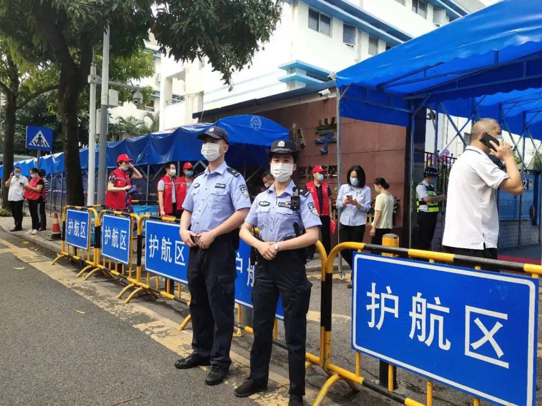 据悉,早上6时许,福田公安分局警务人员已到岗辖区各学校,与校方一同携手联动执勤,及时疏导车流,指引车辆有序停放,民警、辅警全副武装,同时督导学校保安员携带护卫工具上岗, 加强观察,及时处置可能发生的各类突发事件。