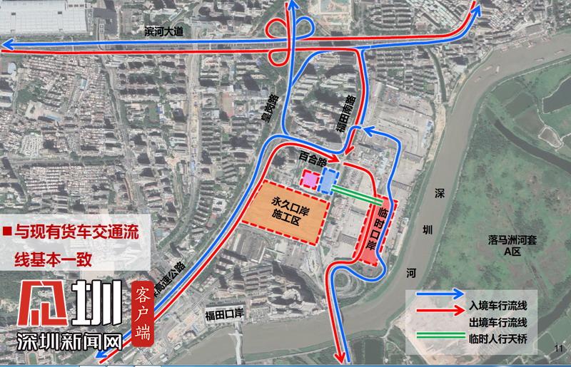 据了解,皇岗口岸临时旅检场地建设工程选址于货检出境场地和入境场地中间位置,需要拆除货车出境一半的通道作为建设用地。在建设过程中既要保证皇岗口岸24小时正常通关秩序,也要服从口岸区域监管的各项要求,施工和通关互相影响,堪比“开着汽车换轮胎”,难度在深圳口岸改造和建设中前所未有。