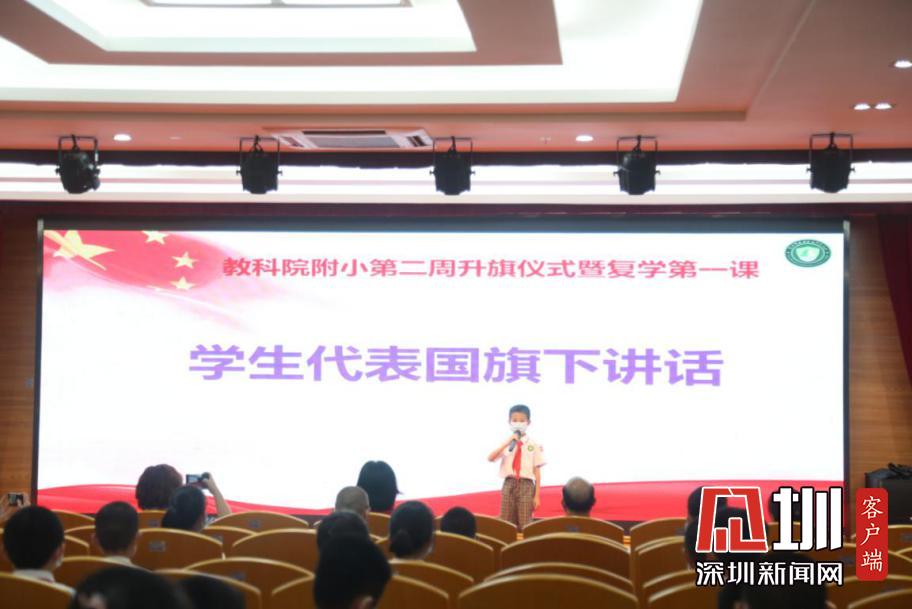 升旗仪式中教科院附小学子肃立、敬礼,眼底盛满了崇敬与憧憬。随后,蔡锐琛同学代表全体少先队员国旗下讲话,他分享了如何做好个人防护,如何行动践行“从小学先锋,长大做先锋”的美好愿望。