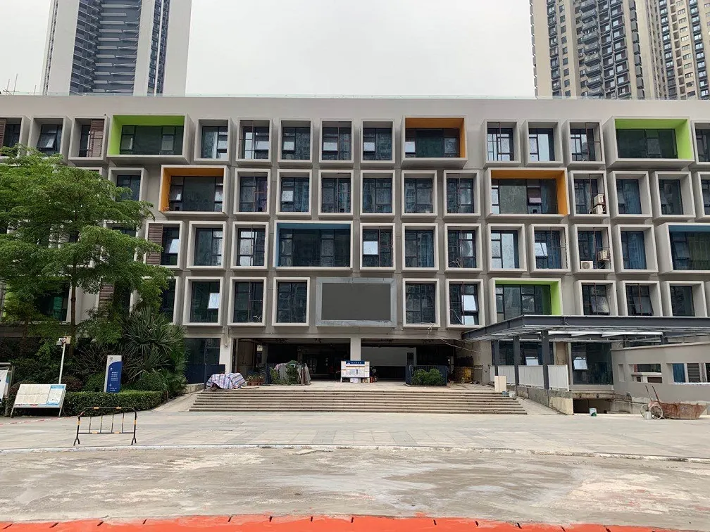 最新进展:教学楼及宿舍楼室内装修完成50%,外墙涂料完成95%;室外景观园林、跑道及球场完成80%。预计今年6月底完工并交付使用。