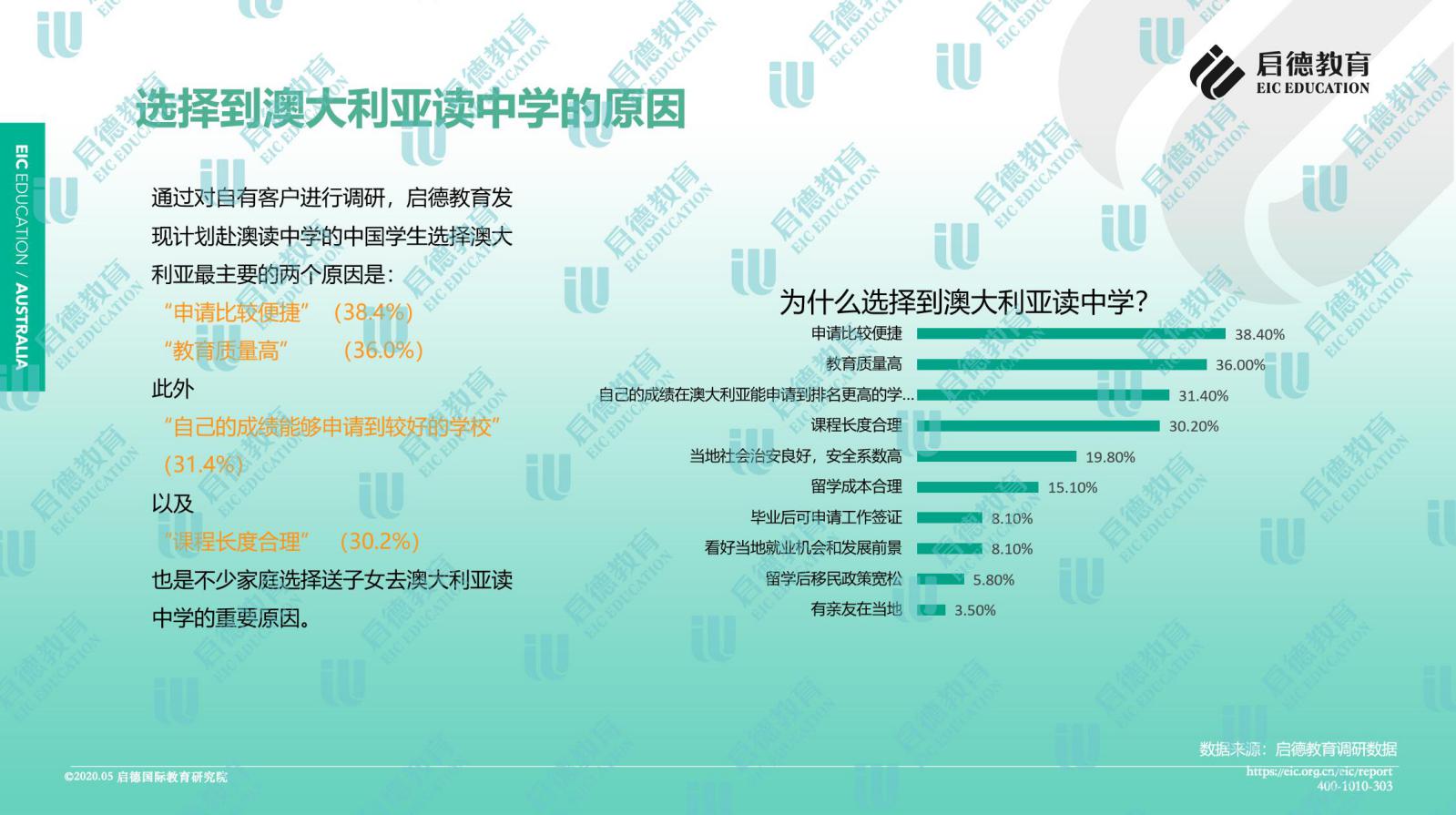 “申请比较便捷”与“能够申请到排名更高的学校”为中国学生赴澳留学主要动因