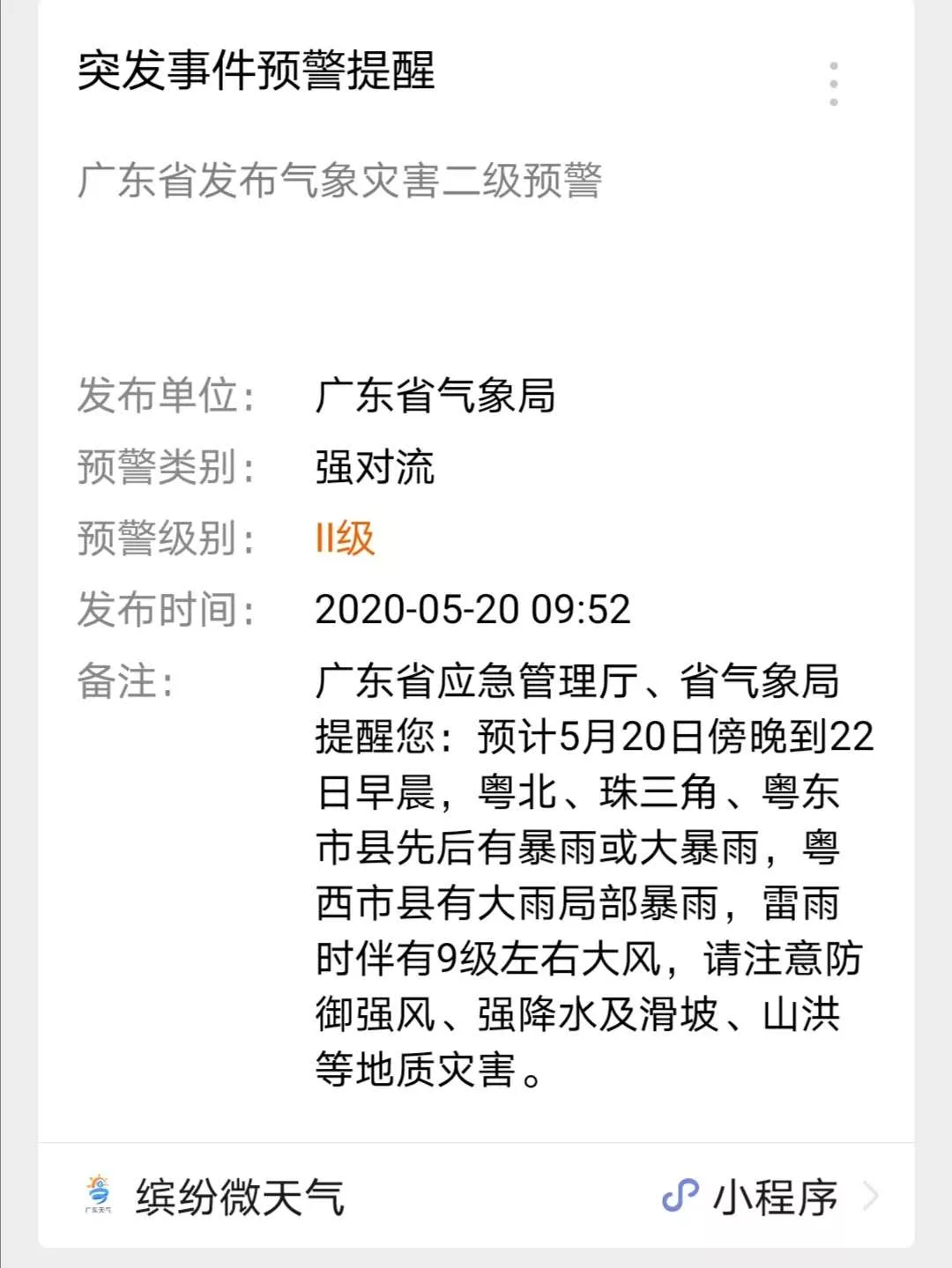 强对流短信预警提醒