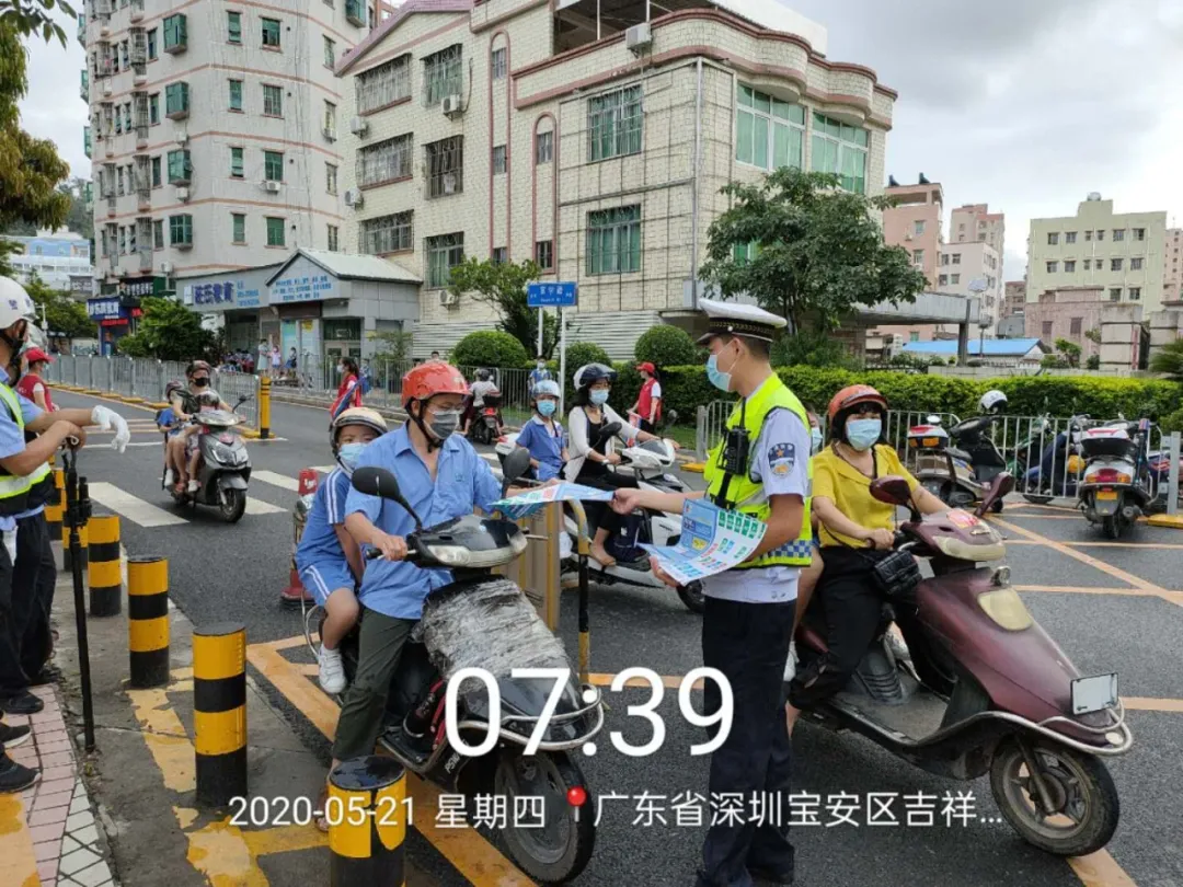 见圳客户端·深圳新闻网2020年5月22日讯(见圳客户端、深圳新闻网记者 郑晓鹏)今天你在校门口看见交警了吗?记者从深圳市交警局获悉,这几天深圳交警一大早就守在各学校门口及路段,除了疏导交通、保障孩子上学路安全,还有一个重要的“任务”——电动车大检查。据了解,5月20日,深圳交警在全市范围内选取了70所学校进行抽查,共5037辆电动车被查,头盔佩戴率达89%。