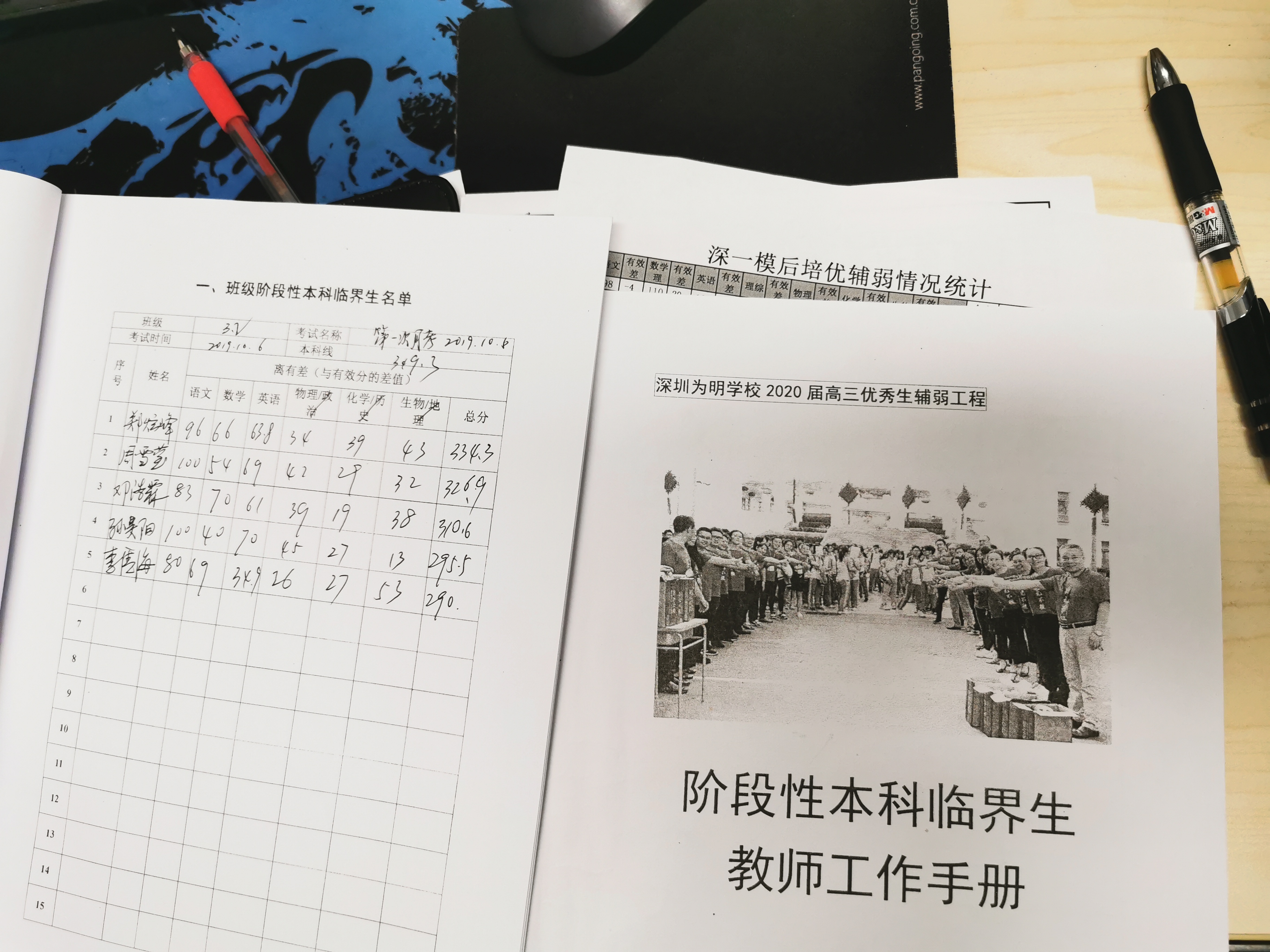 每位导师还都会有多本笔记,像“阶段性本科临界生教师工作手册”,会详细记录学生每次考试的成绩和针对每一个学生的考试简要分析。导师之间也会经常就各自学生的情况进行沟通交流,并针对各科情况进行探讨并制定详细的解决之道。