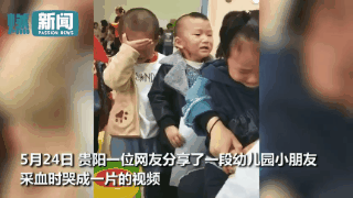 24日,贵阳一幼儿园小朋友正排队等着扎手指采血。