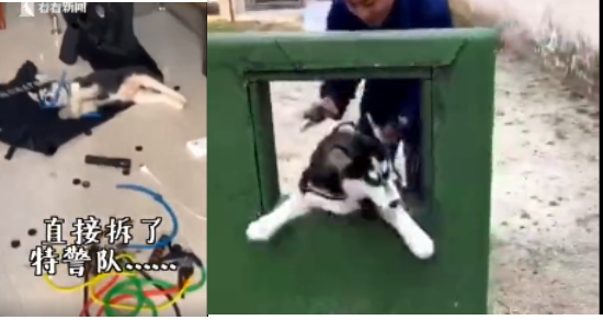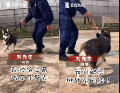 最近,云南某特警队和消防队的小哥哥想挑战不可能。于是收养了两只二哈,一只叫不拆一只叫八万,都是有正式编制的警犬。