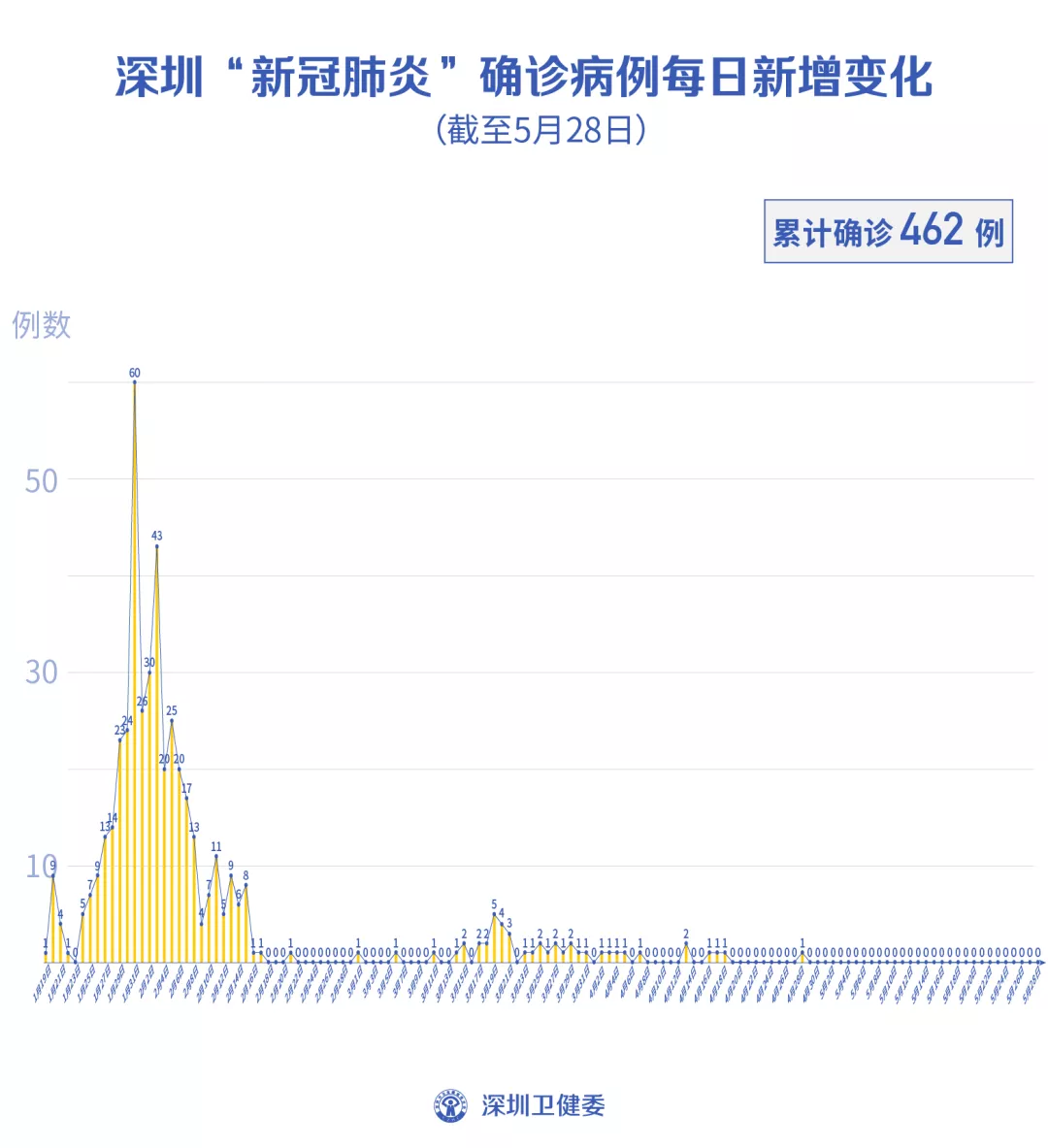 截至5月28日24时,深圳累计报告新冠肺炎病例462例。 深圳103天本地感染病例零报告,确诊病例清零,正在医学观察的无症状感染者清零。 【境外输入】:当日无新增,累计报告境外输入病例39例。 【境内病例】:当日无新增,累计报告境内病例423例。 【无症状感染者】:当日无新增,全市尚在医学观察的无症状感染者清零。 累计报告确诊病例中,男性229例、女性233例。 目前,死亡3例,累计出院459例。 2名密切接触者正在接受医学观察。 张文宏:每天吃3-4个鸡蛋 已写入治疗处方 居家隔离时吃什么?孩子在学校内不便戴口罩怎么办?坐飞机时能吃东西吗?张文宏对此一一作答。 5月28日下午,中国驻贝尔法斯特总领馆与上海市外办、上海市卫健委联合组织防控新冠肺炎疫情视频讲座,邀请上海新冠肺炎医疗救治专家组组长、复旦大学附属华山医院感染科主任张文宏教授与在英国北爱尔兰的中资企业、华人华侨、留学生等进行交流,答疑释惑。 驻贝尔法斯特总领事张美芳提问,在英国北爱尔兰的一些华人华侨很困惑: 01.英国天气寒湿,是否需要喝中药来预防新冠病毒?哪些食物可以预防新冠病毒? 张文宏说,确实在中国,此次新冠疫情中,感染的确诊病人经过中西医一起治疗,疗效非常好,中西医结合治疗也成为中国治疗新冠的常态。但到目前为止,没有哪个药吃了就不生病,没有哪个食品吃了就不生病。 张文宏强调,社交距离还是第一位的,最重要的防控手段就是延长社交距离。最危险的行为就是近距离不戴口罩说话,病毒感染大多数是通过密切接触感染。戴口罩是延长社交距离最好的方法。同时,加强饮食、锻炼都非常需要。 02.在英国北爱尔兰,轻症患者只能居家隔离,当地只有危重症才能住院。那么居家隔离如何治疗?饮食上有何禁忌? 张文宏表示,轻症病人最重要的是做好隔离,不要传染给家人。并且要摄入充足水分、维生素C与营养。 “我们上海医院治疗确诊病例主要处方之一就是每天吃3-4个鸡蛋,这是写入我们治疗的处方内的。如果你们没有那么充足的鸡蛋,可以用肉、鱼来替代。此外,保证充足摄入营养、饮水等。如果能够走路,在空旷的院子里也还是可以透透气。”他建议。 关于消毒、戴口罩的细节问题,张文宏说,一般来说,鞋子、外套等能引起感染的风险非常低。但是在疫情高发地区,还是建议家里尽量分放外套区域和室内区域。不建议外套带到室内区域,做到这一点就没风险。鞋子则没必要消毒。 03.英国也即将复学,如果开学后孩子在学校内不便戴口罩,该怎么办? 张文宏说,小孩子天性就是玩,风险最大就是近距离接触。可以趁此机会教育小孩子,读好书,密切接触活动要减少。回来第一件事情,就是要给小孩子洗手。 04.海外华人华侨如果要坐飞机回国,该如何安全地在飞机上喝水吃东西? 张文宏说,在飞机上等一些公共场所,必须要喝水、吃东西。“关键在于,你和你旁边的人不要同时喝水吃东西。你看到他戴口罩,你就赶快喝水吃东西;如果他吃了,你就赶快戴口罩。”他说,很多人在飞机上穿防护服,十几个小时不吃不喝,一旦感染病毒,很大风险就是转为重症。一定要吃有营养的东西,不要吃方便面。 他建议,上飞机前吃饱喝足,上了飞机就戴口罩睡觉,醒来后马上补充能量吃东西,吃完再继续睡觉。这样一觉醒来就到了祖国大地。 05.如何在乘机过程中做好个人防护,并保持呼吸正常? 张文宏说,乘机中不要过于恐惧。坐飞机最低防护标准,就是戴个外科医用口罩或戴n95口罩。根本不需要穿防护服、戴护目镜,注意吃完东西就洗手。“如果你看到邻座的人是带的有阀门的口罩,那你要注意了,有阀门的口罩相当于他把呼出来的气拼命往外吹,这时你就得当他没有戴口罩来处理。” 资料来源:深圳市疾控中心、深圳市卫健委、广东省卫健委、澎湃新闻