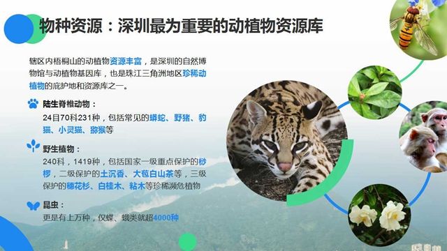据介绍,作为全市最早开发城区,罗湖至今仍保留一半山水一半城生态格局,全区面积78.75平方公里。其中,建成区仅34.67平方公里,生态保护区面积占比超过50%,森林覆盖率达51.86%,城市绿化覆盖率达64.6%。森林、湿地、湖库和野生动植物共同构成陆地生态系统的主体。