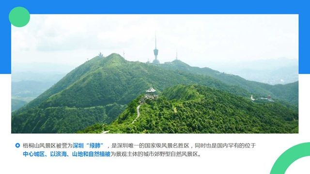 梧桐山海拔943.7米,横跨罗湖、盐田、龙岗三区,其中大部分在罗湖区境内。景区动植物资源丰富,是深圳重要的物种基因库,森林覆盖率达88.6%。植被类型多样,拥有大面积的南亚热带季风常绿阔叶林、山地常绿阔叶林与山顶灌草丛。其中,最具特色的植物是毛棉杜鹃群落景观,在盛花季节,“杜鹃谷”“万花屏”呈现震撼的花海景观,吸引无数市民游客前来观赏,成为深圳一大盛景。梧桐山风景区被誉为深圳“绿肺”,是深圳唯一的国家级风景名胜区,同时也是国内罕有的位于中心城区、以滨海、山地和自然植被为景观主体的城市郊野型自然风景区。