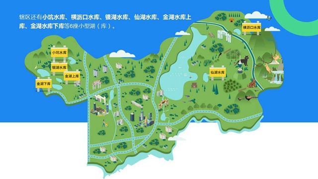 深圳水库于1960年建成,设计水位为28.83m,水面面积4.06平方公里,水库总库容4577万立方米,几十年来水质达标率始终保持100%,持续为深港人民提供优质饮用水,被誉为深港两地人民的“大水缸”。此外,辖区还有小坑水库、横沥口水库、银湖水库、仙湖水库、金湖水库上库、金湖水库下库等6座小型湖(库)。