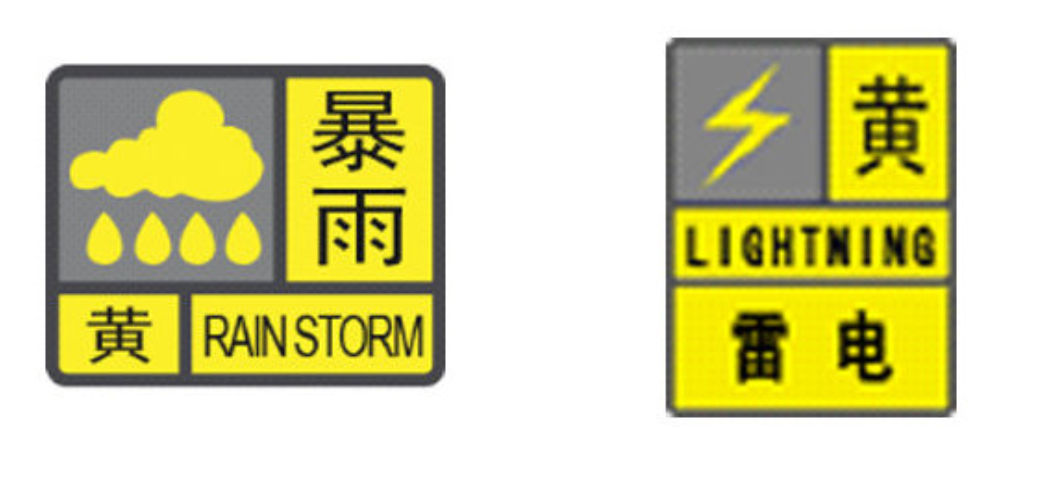 分区暴雨黄色预警和全市雷电预警