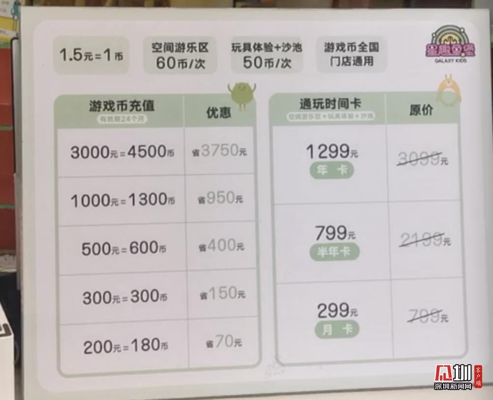 游乐场内多个游乐项目,收费各有不同,适宜3到12岁的儿童游玩,家长也可以选择购卡通玩。其中月卡299月,半年卡799元,年卡1299元,家长可以按需购买。游乐场内部洁净,有大量家长休息区,前台可租借充电宝,还有专门的储物柜可以放置随身物品。