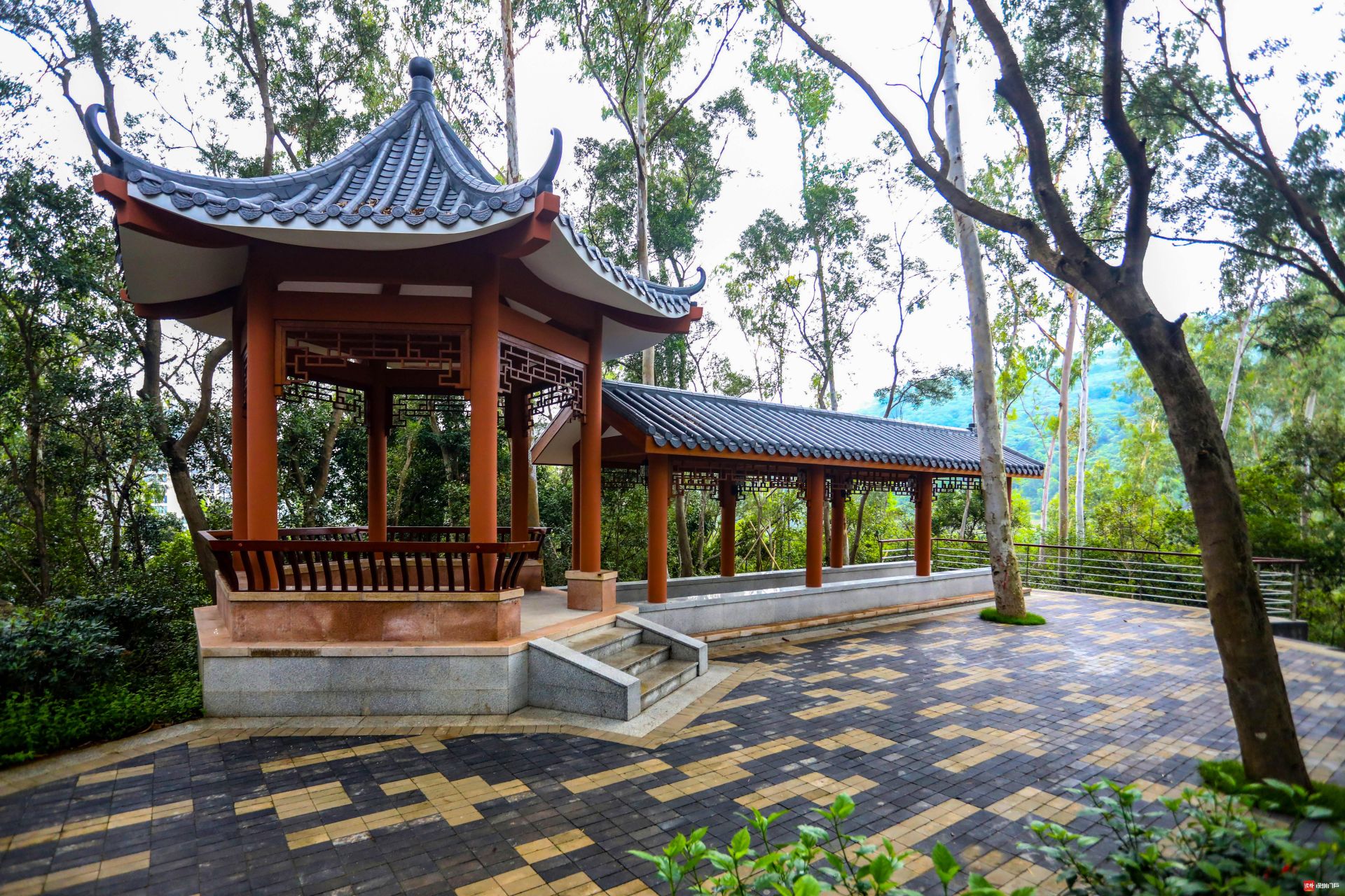 听涛区南入口位临梅林路,北入口位临二线公路,交通便利,周边住宅区多,人口稠密。为了给市民游客提供良好的综合性服务,公园依据山体自然地形修建了观景平台、避雨亭廊、公共厕所等基础设施。同时,作为以山林为主体的公园,在保证基础服务设施完备的基础上,公园以植物造景为主,缩减铺装面积,尽量不破坏地表植被和自然景观,最大限度地保留其自然风韵。景区内植被茂盛,绿意盎然,山风吹拂,绿涛波动,呼应“听涛”的主题。